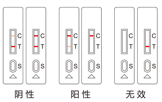 無 效 :未出現(xiàn) C 線,可能操作不當(dāng)或檢測(cè)卡已失效。在此情況下,應(yīng)再次仔細(xì)閱讀說明書,并用新的檢測(cè)卡重新測(cè)試。