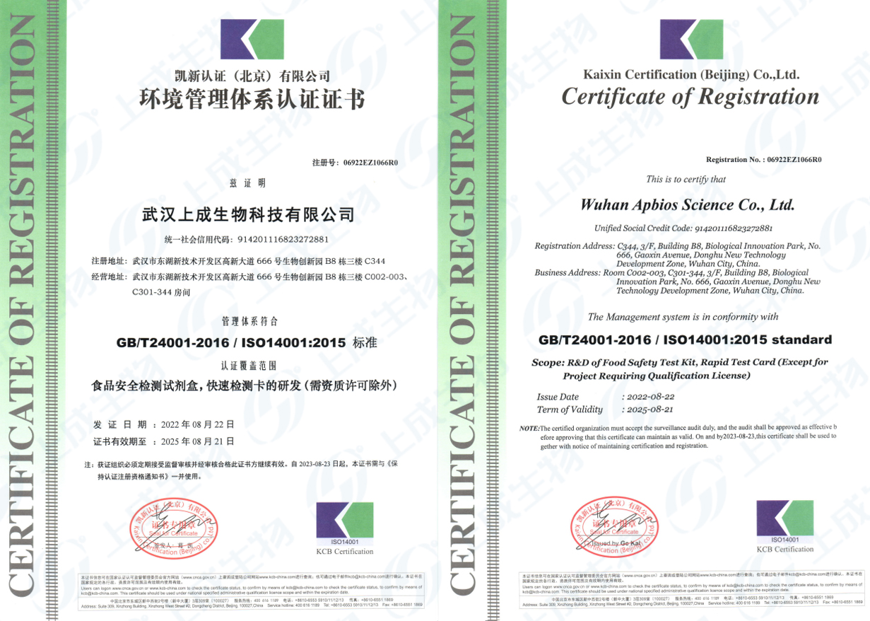 武漢上成生物科技有限公司獲得環(huán)境管理體系認(rèn)證證書