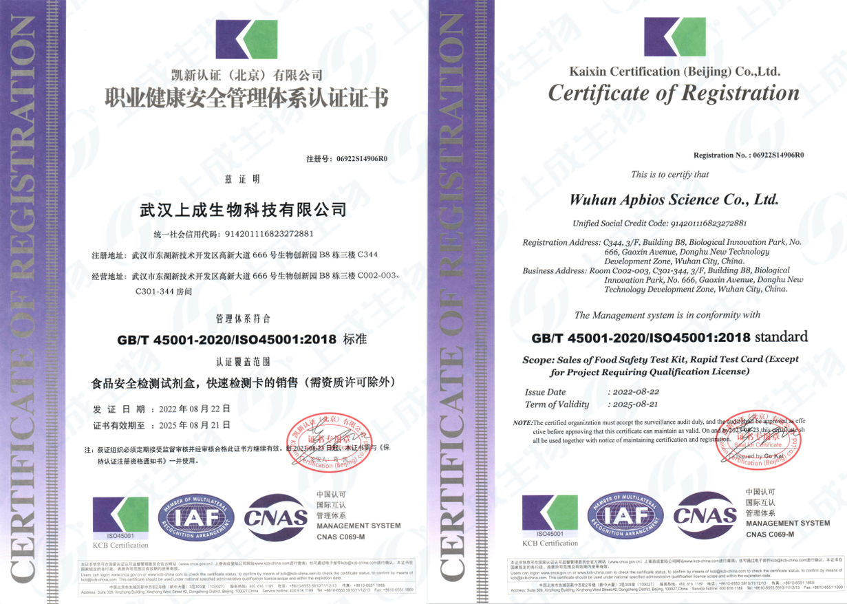 武漢上成生物科技有限公司獲得職業(yè)健康安全管理體系認(rèn)證證書