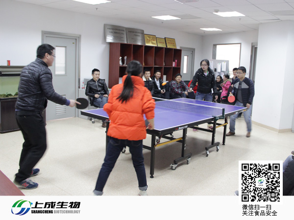 12月15日下午,在武漢上成生物會議室順利舉辦了2016年第三屆員工乒乓球比賽,此次比賽分為:男子單打、女子單打、男女混雙兩個部分,采用淘汰制與循環(huán),參與的員工多達20多人。