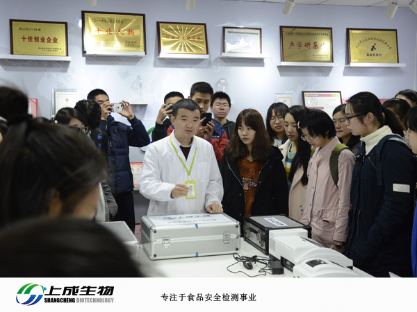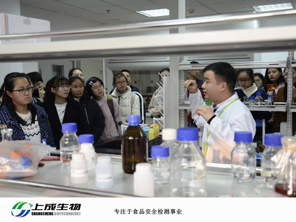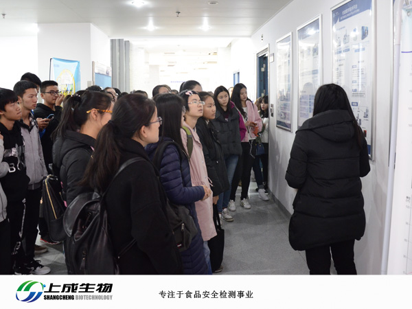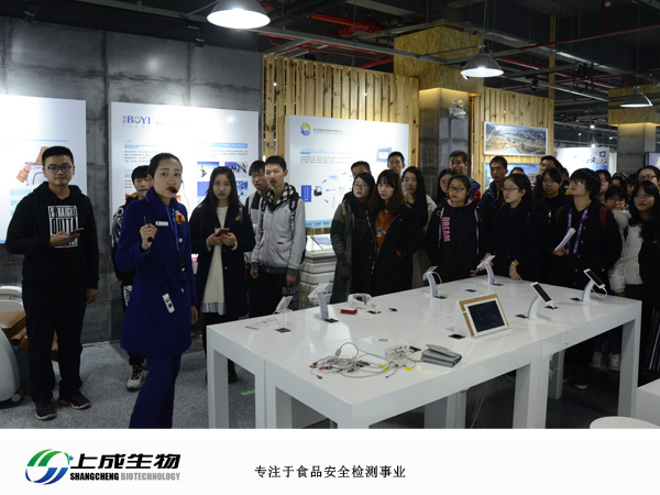 同學們首先來到光谷生物城內(nèi)的科技成果交易展示廳。學習了解生物城的整體發(fā)展規(guī)劃。第二站來到來到武漢生物技術(shù)研究院的公共服務(wù)平臺,參觀學習最新的技術(shù)前沿。第三站同學們來到了上成生物的研發(fā)基地。由技術(shù)負責人為大家用簡單易懂的語言講解食品安全的一些基礎(chǔ)知識。告訴同學們平時飲食的一些健康小常識。
