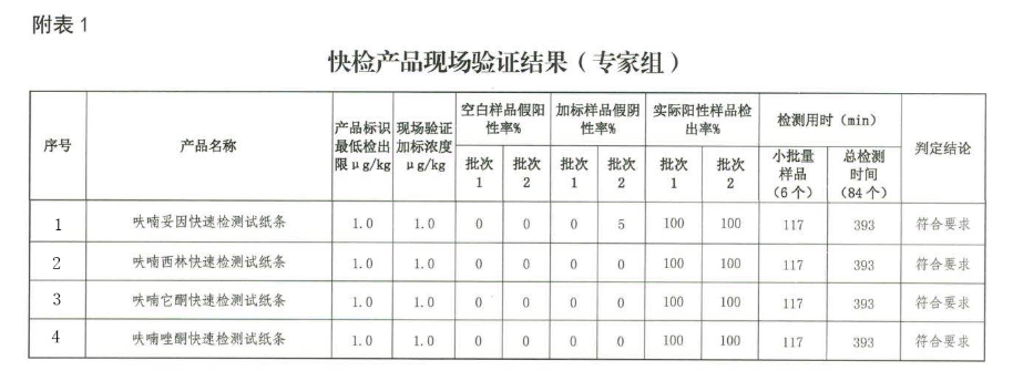 水產(chǎn)品驗證是按照農(nóng)業(yè)農(nóng)村部關于開展《2018年度水產(chǎn)品中禁用藥物殘留快速檢測產(chǎn)品推薦篩選和驗證工作的通知》(農(nóng)漁科函[2018]76號)要求,在農(nóng)業(yè)農(nóng)村部水產(chǎn)品質(zhì)檢中心(上海)現(xiàn)場開展驗證,驗證指標包括產(chǎn)品的假陽性率、假陰性率、實際陽性樣品檢出率和檢測時間等。