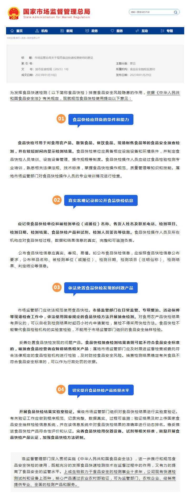 關(guān)于規(guī)范食品快速檢測使用的意見