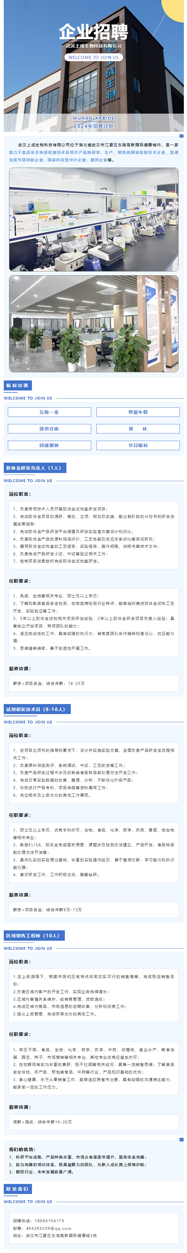 職等你來| 上成生物誠聘英才,福利多,待遇好!